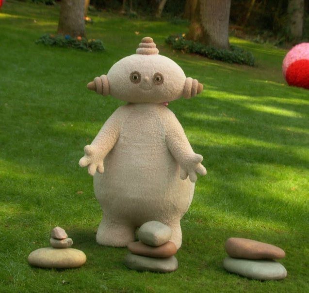 Makka Pakka pokazał mu kamyk. Iggle Piggle dotknął go palcem, a wtedy kamyk zaśpiewał jeszcze głośniej. Iggle Piggle aż podskoczył zaskoczony, a jego kołderka zawirowała na wietrze.